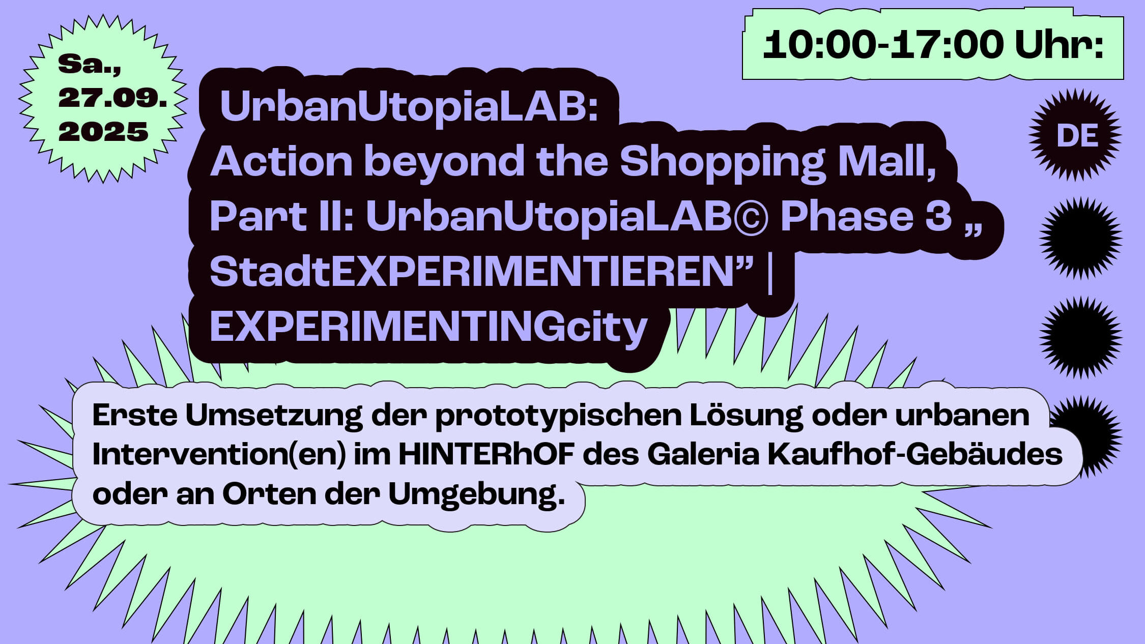 Sa., 27.09.2025, 10:00-17:00 Uhr: UrbanUtopiaLAB: Action beyond the Shopping Mall, Part II: UrbanUtopiaLAB© Phase 3 „StadtEXPERIMENTIEREN” | EXPERIMENTINGcity